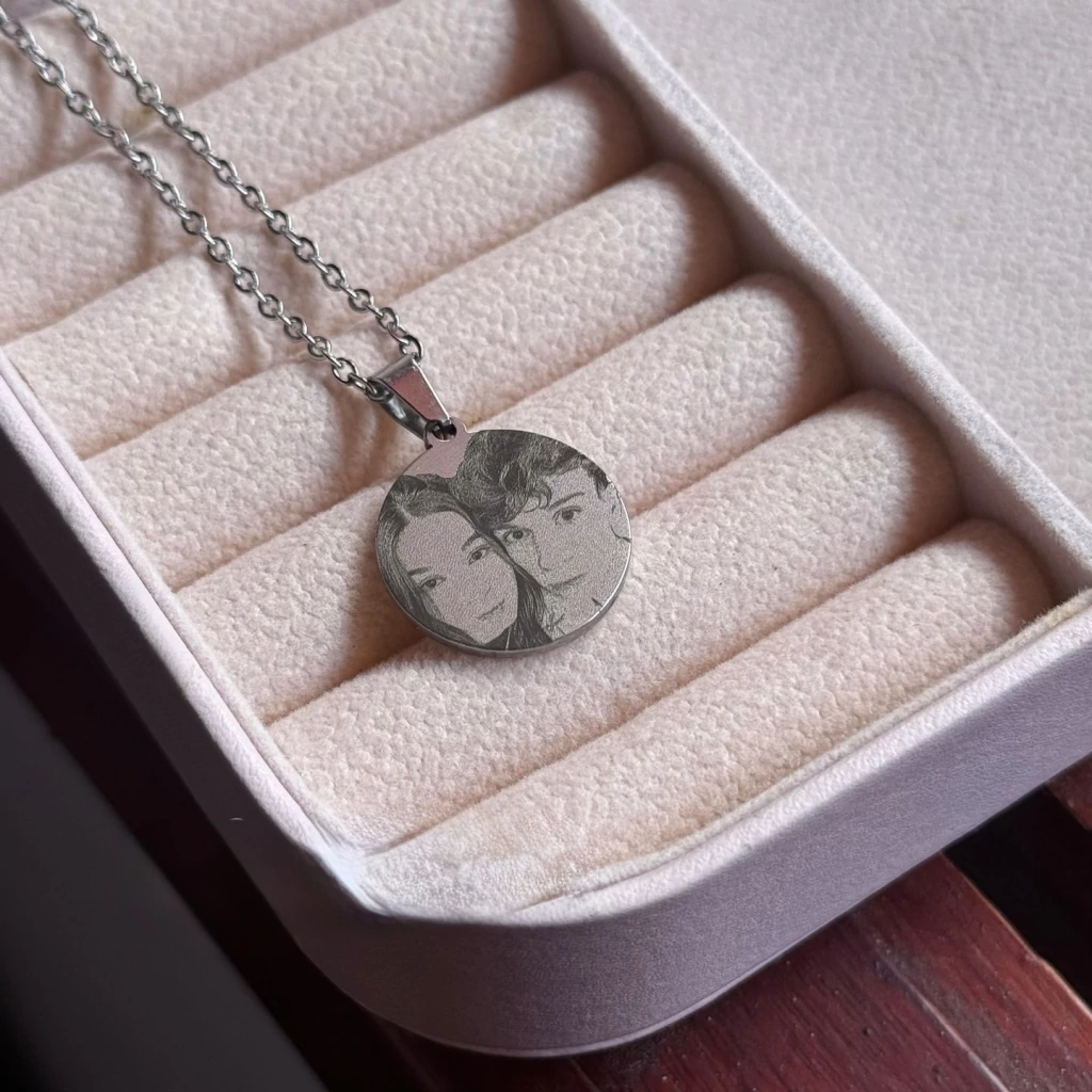 o Colar Medalha Personalizado, perfeito para presentear com um toque único. Com pingente circular de 2x2cm, disponível em dourado ou prata, é feito em aço inoxidável de alta qualidade, garantindo que não desbote nem enferruje. Personalize com sua foto gravada a laser, eternizando momentos especiais com elegância e durabilidade. corrente tamanho 60cm