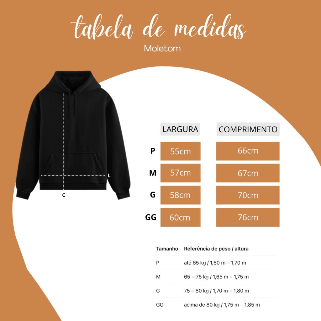 Especificações do Produto: - moletom 50% algodao / 50% poliester - Tamanhos disponíveis: P, M, G, GG