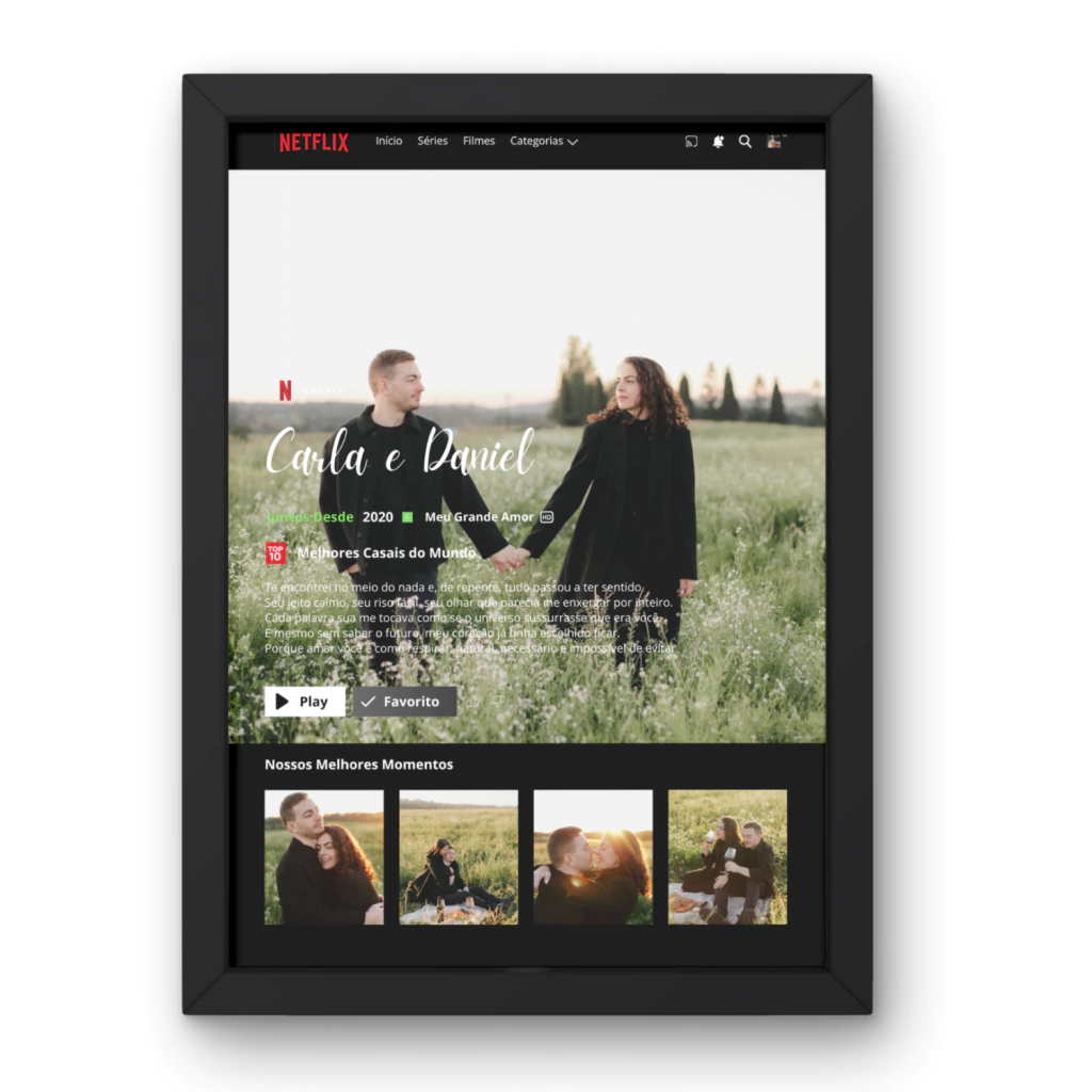 O Quadro Netflix Personalizado é uma opção única e criativa para os amantes de séries e filmes. Com ele, você pode personalizar com suas fotos, nomes, sinopse em um lindo quadro decorativo, criando uma peça exclusiva para decorar ou presentear alguém especial.